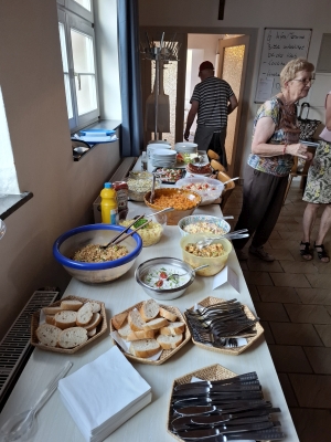 Natürlich durfte auch das leibliche Wohl nicht fehlen: Zum Auftakt spendierte Claudia Kahlert anlässlich ihres runden Geburtstags die Würstchen, die von Josef Schätzle wie immer perfekt gegrillt wurden. Viele fleißige Hände sorgten mit köstlichen Salaten und liebevoll zubereiteten Nachspeisen für ein rundum gelungenes Buffet. Für heitere Stimmung sorgte zudem Helmut Kahlert, der die chorfreie Zeit augenzwinkernd in gereimten Versen Revue passieren ließ.