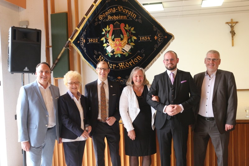 Bad Nauheim-Nieder-Mörlen. »Musik bedeutet, aufeinander zu hören, den richtigen Ton zu treffen und den Takt zu finden.« Diese kurze Formel könne als Blaupause für die Gesellschaft dienen, stellte Landrat Jan Weckler fest, als er am Samstagabend als Schirmherr beim Festkommers dem Gesangverein Frohsinn Nieder-Mörlen zu dessen 100-jährigem Bestehen gratulierte.
