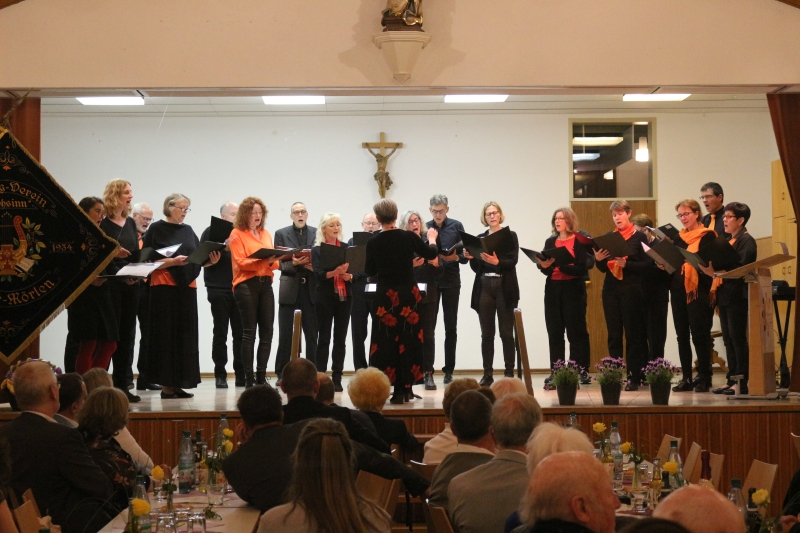 Der Gesangverein Frohsinn singt beim Festkommers im Pfarrheim anlässlich seines 100. Geburtstages unter der Leitung seines Dirigenten Sebastian Witzel. © Annette Hausmanns